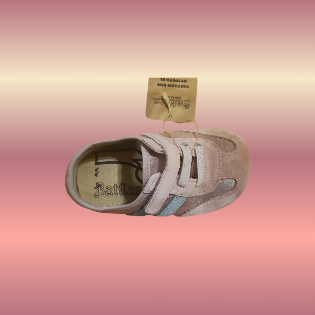 Las zapatillas deportivas barefoot de serraje rosa con velcro están diseñadas para ofrecer a los más pequeños comodidad, libertad de movimiento y un estilo moderno y atemporal. Fabricadas en serraje suave y duradero, estas zapatillas infantiles combinan diseño minimalista con la practicidad que los niños necesitan en su día a día.